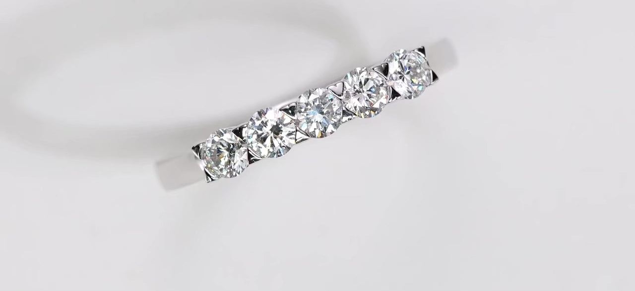 The half-eternity design symbolizes everlasting love and commitment, while the 14K white gold setting enhances the diamond’s radiant glow. Perfect for weddings, anniversaries, or as a Valentine’s Day gift, this ring embodies timeless beauty and sustainable luxury.